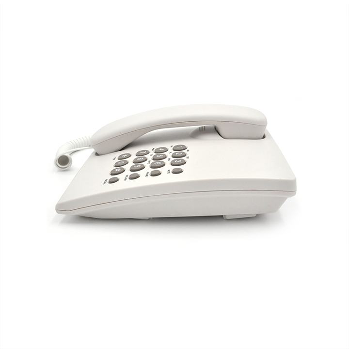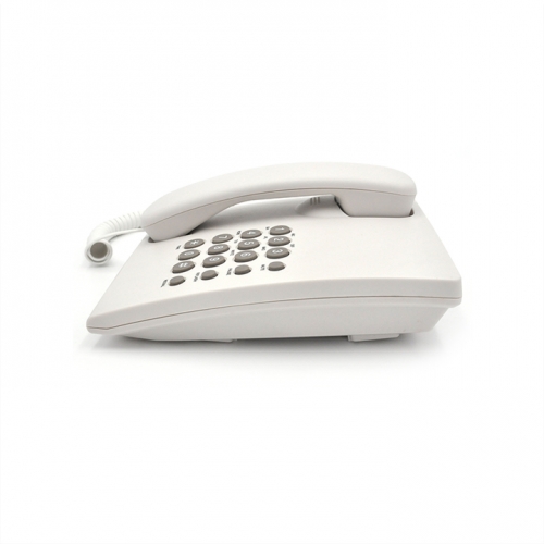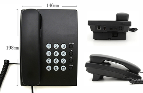 PA146 Corded Phone Is a Basic Telephone Model Without Lcd Display. This Model Has Simple Functions Like Mute Button, Pause Button, Flash Function And Redial Last Number. It Has a Bracket At The Bottom, Which Make It Easy To Read When Users Are Sitting. Besides, It Features Ringer Volume Hi/Lo/Off Switch and Tone/Pulse switch on the side.